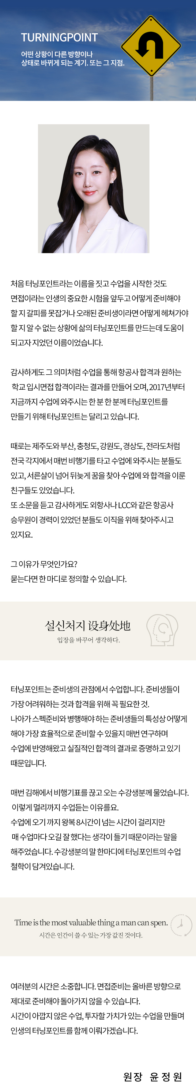 감사하게도 그 의미처럼 수업을 통해 항공사 합격과 원하는 학교 입시면접 합격이라는 결과를 만들어 오며,